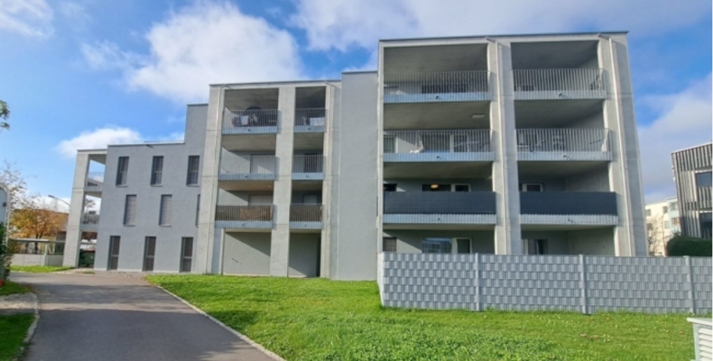 Neu erbaute und vollvermietete Wohnanlage, 9 Wohneinheiten mit großen Sonnenterrassen, 2 Gewerbe im Erdgeschoss, 9 Tiefgaragenplätze und mehrere Aussen-Abstellplätze für Bewohner, Kunden, Besucher.